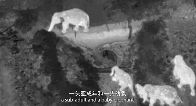 7月10日,凌晨一點多,消防隊員不敢懈怠,盯着手裏無人機的監視屏,密切關注着大象們的遷徙活動,他們發現,有兩頭成年象帶領着一頭亞成年象和幼象,跑到水池邊大叫。離開象羣,這四頭象要做什麼。消防員的心提了起來。
