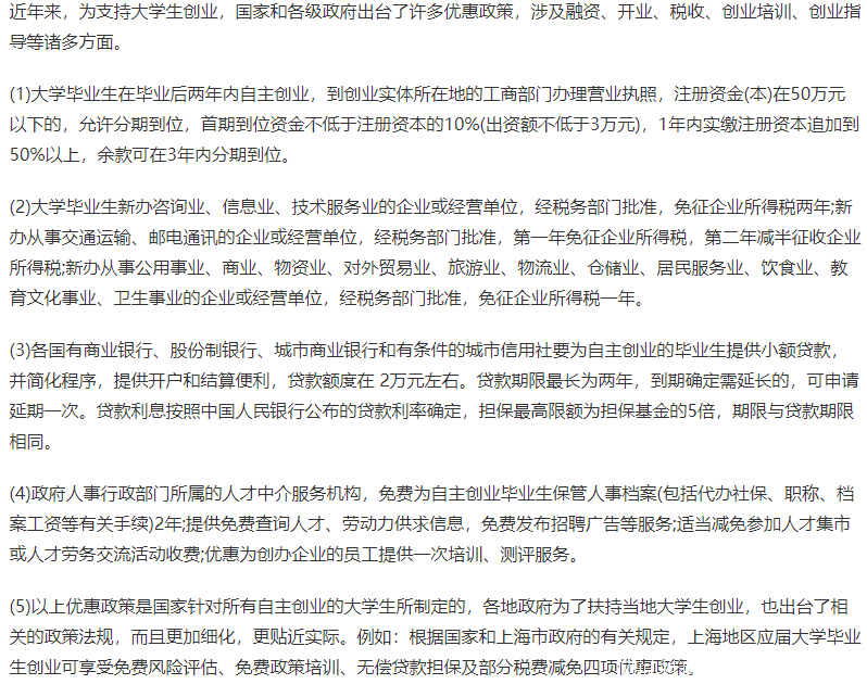 就以國家層面而言,註冊資金在50萬元以下的創業單位都允許分期到位,首期到位資金不低於註冊資本的10%(出資額不低於3萬元),1年內實繳註冊資本追加到50%以上,餘款可在3年內分期到位,其次還有起碼一年的各類免税期,便捷快速的創業貸款,免費發佈招聘信息等等。