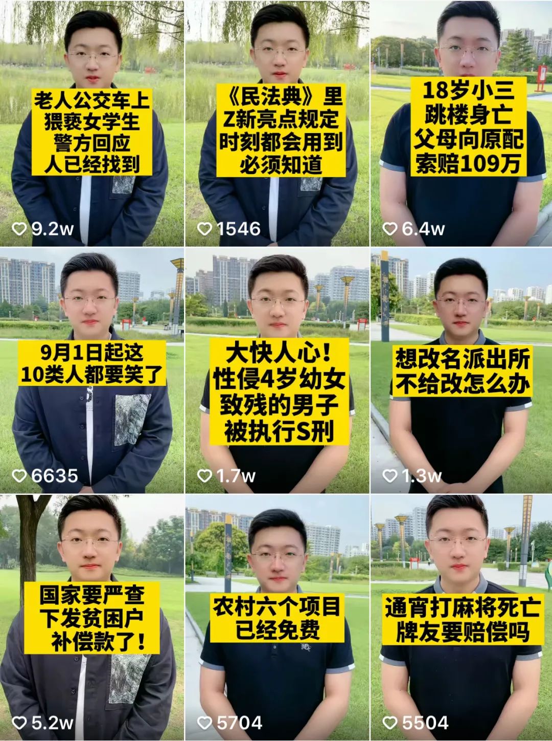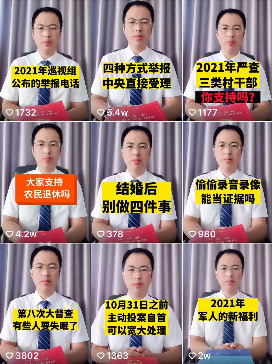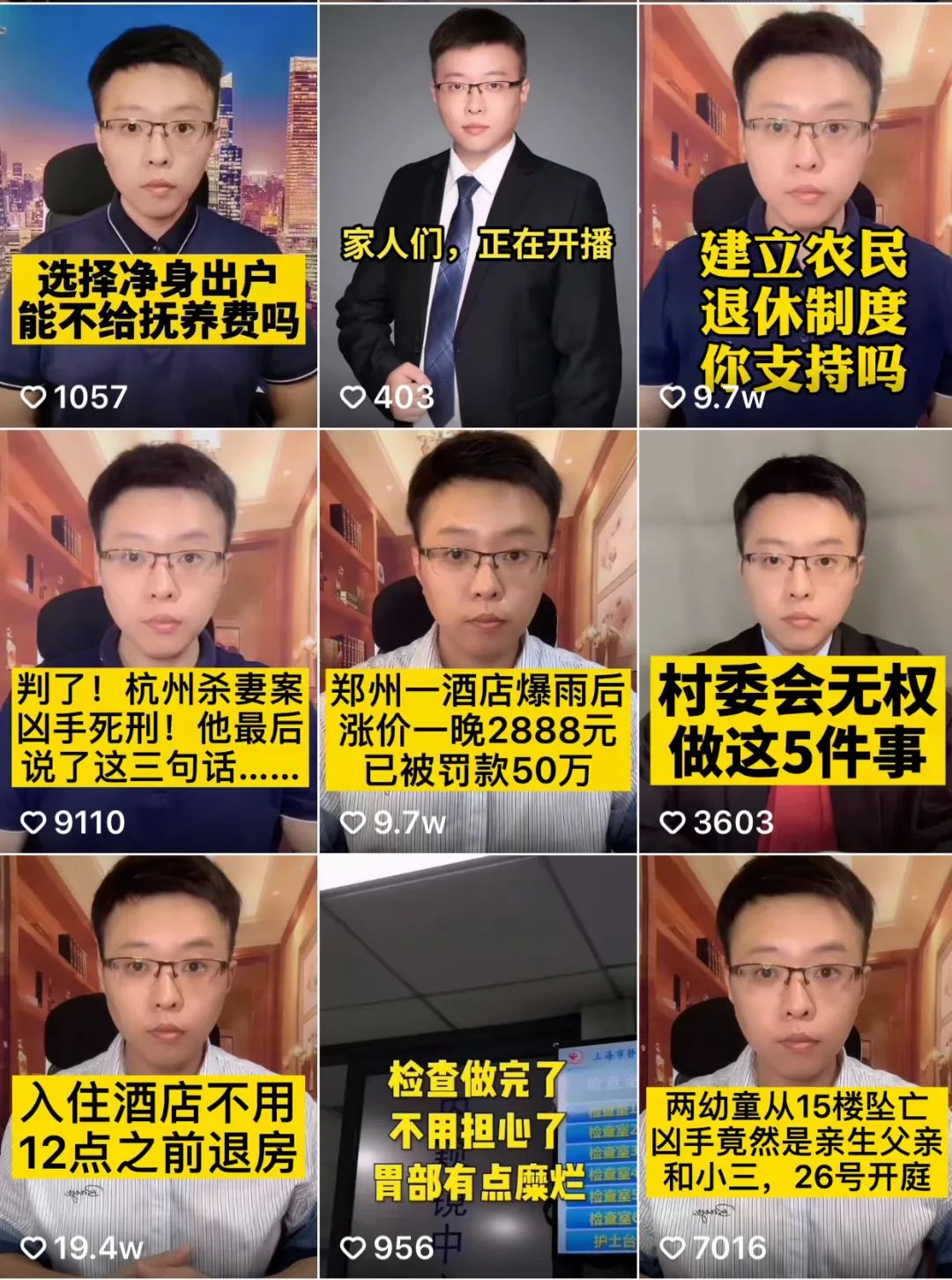 他的短視頻除了婚姻、家庭的內容外,還涉及到了許多老百姓在日常生活中會遇到的問題。不説空話、給出針對性的解讀,可以説相當的接地氣了。