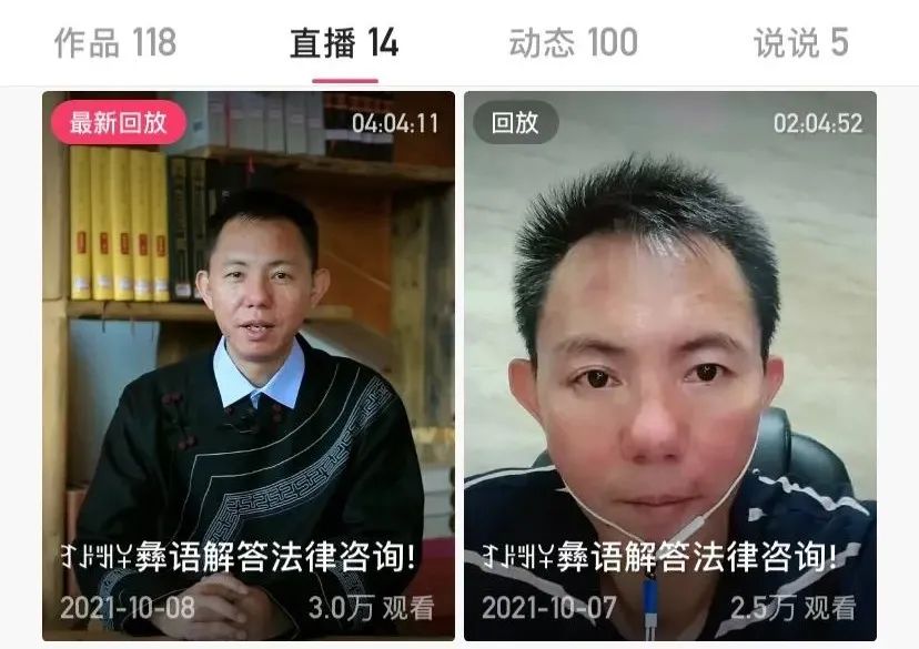 作為少數民族,賬號的設定就是為彝族同胞普法,因此所有的內容都是用彝語錄制。