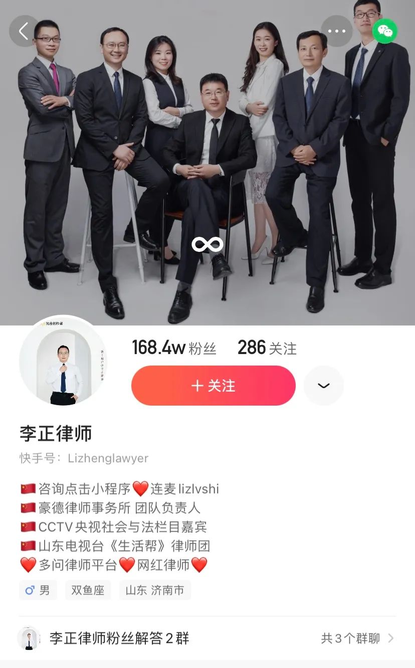 作為電視台常客的李正律師,在快手上做的也是風生水起。