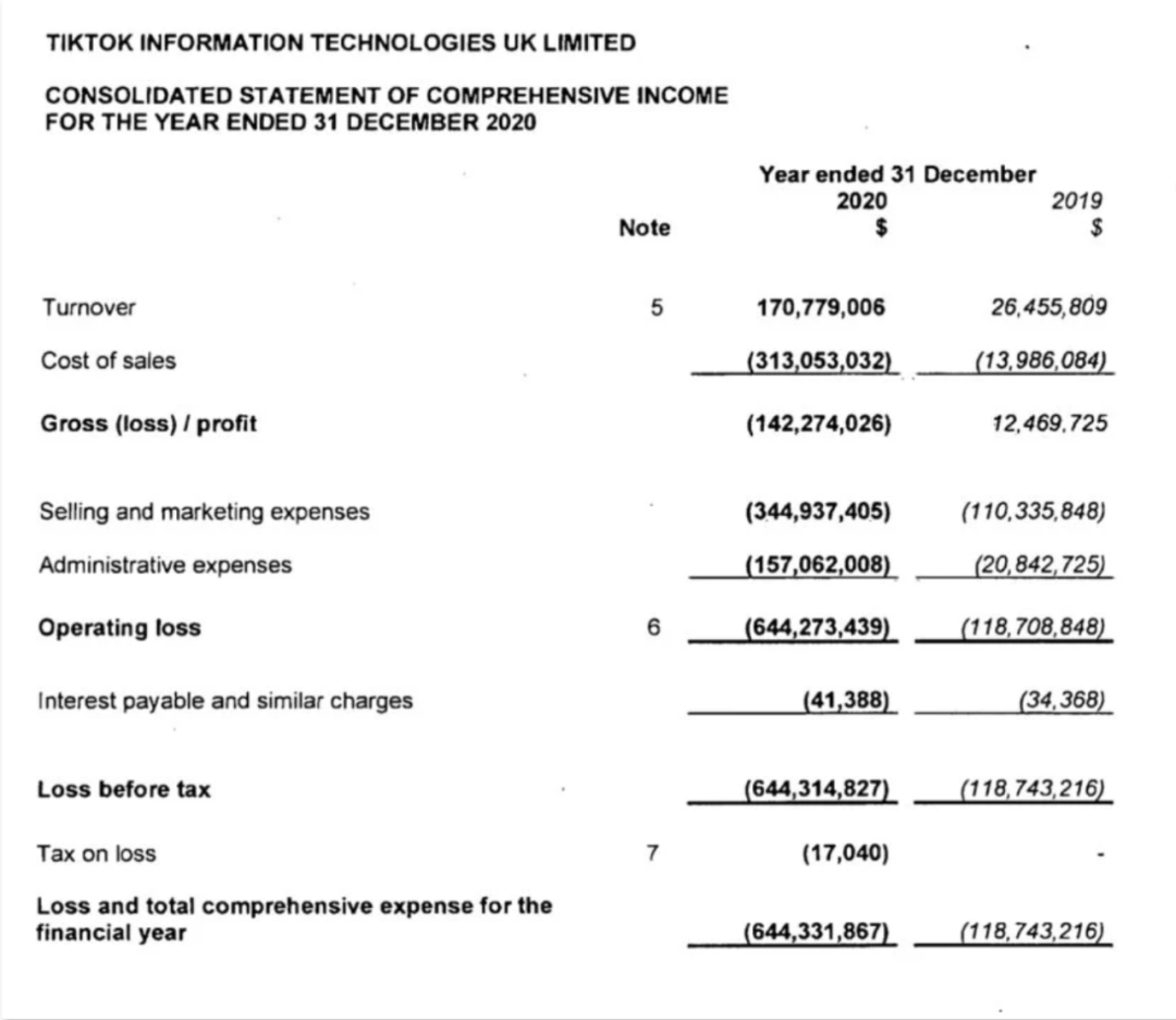 同時,其全年運營虧損同比增長442%,從2019年的1.1871億美元增長到2020年的6.4427億美元。除了“在歐洲經濟區、英國和瑞士加強銷售和營銷工作”之外,TikTok 將其飆升的運營虧損歸咎於“增加員工以支持業務增長”。