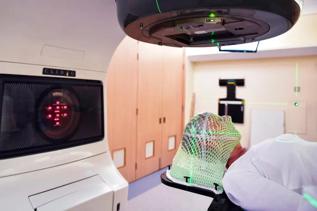 一個白色的網狀面罩蓋住我的頭和臉,將我固定住。在接下來的1個小時裏,金屬牀會在一台圓形機器中滑進滑出,對我的大腦和脊柱進行放射治療。