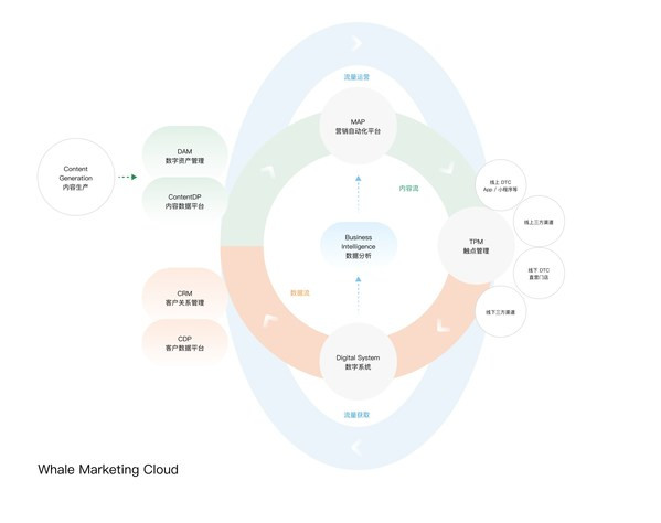 帷幄營銷雲(Whale Marketing Cloud)聚焦於消費、零售品牌的智能化營銷和銷售環節,通過打通企業線上線下全域數字化營銷體系,以數據作為生產力,驅動營銷自動化,實現精準營銷、降本增效。Whale Marketing Cloud主要包括營銷自動化平台(Marketing Automation Platform)、門店數字化平台(In-store Digitalization)、數字資產管理系統(Digital Asset Management)、客户數據平台(Customer Data Platform)、商業智能(Business Intelligence)和統一數據系統(One Digital System)六大產品體系,打造大規模實時數字化營銷閉環。帷幄基於雲原生和低代碼技術能力,用更高效的方式為客户提供簡單易用、可移植、可伸縮和模塊化部署的應用服務,開放資源並統一開發標準。