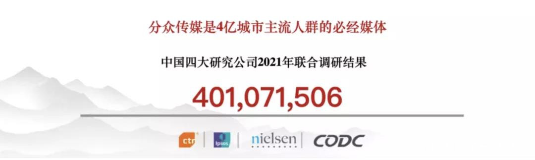 分眾是中國面對城市主流人羣的最主要的中心化媒體之一,最新的調研數據顯示,分眾已經突破了日覆蓋4億人口。在2018年的時候,這個數據還只是停留在一個更小的數,3.1億,但是今天我們看到這個數字已經變成4.01億。中國城鎮人口6億,我覺得分眾是一個能夠引爆4億城市主流人羣的中心化平台,在主流人羣的必經之路,來回高頻有效的觸達。