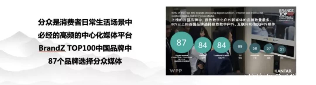 我覺得品牌才是持續的紅利,還能夠享受時間的複利。分眾的使命和機遇,就是在今天這樣一個國潮崛起的時代,去助推中國品牌的崛起。分眾從2003年成立,2005年7月在美國納斯達克上市,到2015年回到A股市場,分眾實際上是佔據了整個主流消費人羣核心的生活、辦公、娛樂等等場景當中,我們用250萬的終端覆蓋了80%的城市主力的寫字樓和70%的公寓樓。