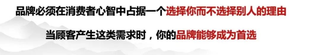 在消費的心智中,如果不能形成指名購買,打價格戰、促銷戰、流量戰只是一個時間問題,是一個必然。每一個品牌必須在消費者心智中找到一個選擇你而不選擇別人的理由。當顧客產生這類需求的時候,你的品牌能不能條件反射般的成為他的首選?我認為這是一切生意的根本。消費品市場走了30年、50年、100年沒有改變,並不會因為今天繁花似錦的流量,一波一波的流量紅利而改變。