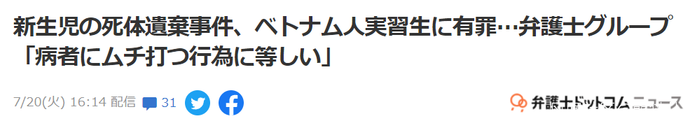 今年7月,一位22歲的年輕越南女孩被判有罪。因為她在日本分娩一對雙胞胎死胎後,將嬰兒屍體藏匿在家中紙箱被人發現。
