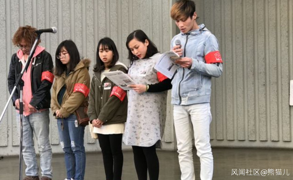 Guen在東京上野公園向市民講述自己被騙的經歷