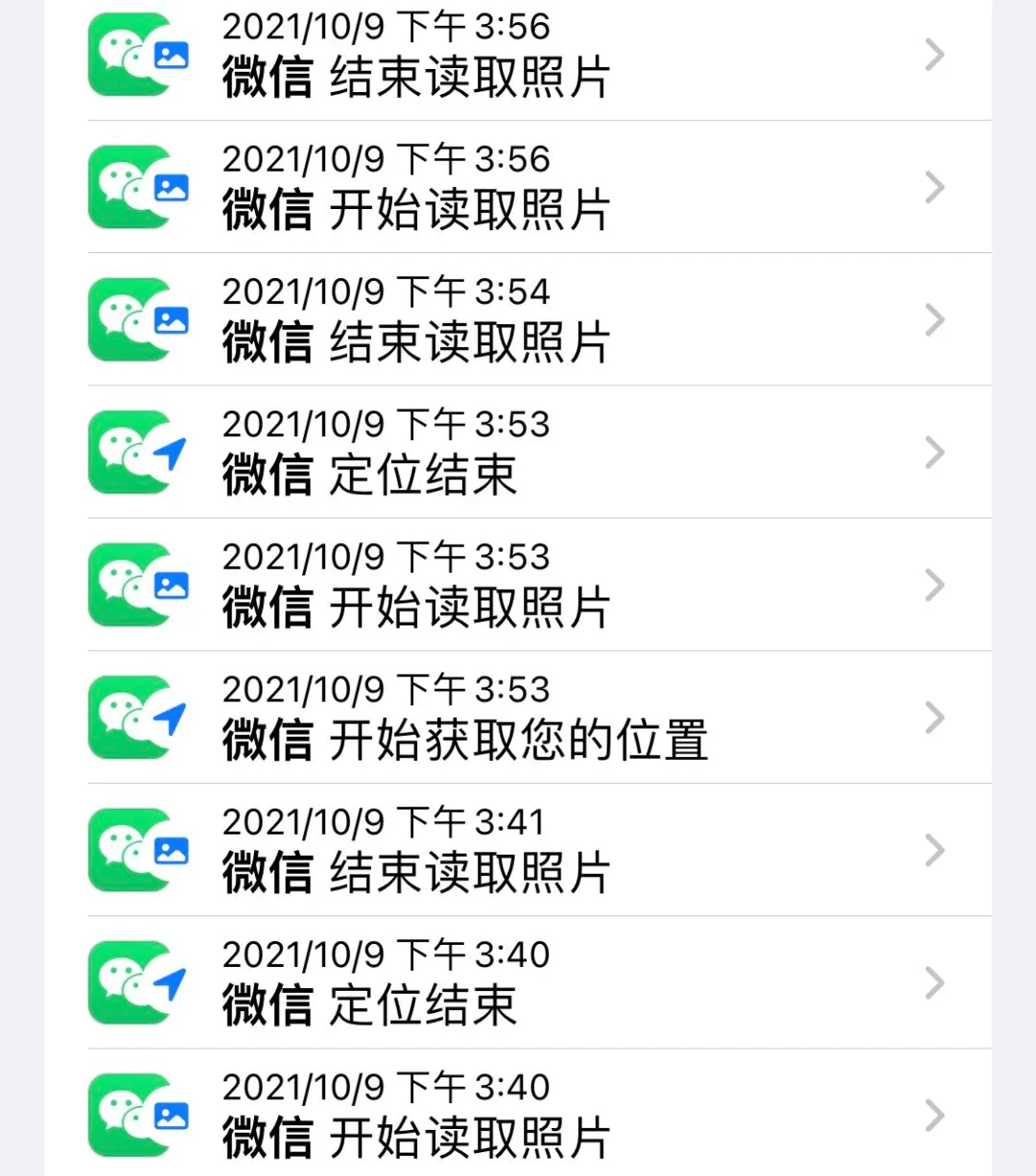 結果他發現**微信在未使用的情況下會在後台讀取用户相冊,**每次讀取的時間長達 40 秒到 1 分不等。