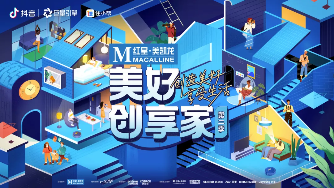 “美好創享家”是巨量引擎推出的年度大型泛生活類綜合IP,今年上半年,“美好創享家”第一季上線,相關話題被快速引爆,成為開年以來房產家居行業第一直播大事件。為了幫助用户持續創造美好、享受生活,9月1日,“美好創享家”第二季正式上線,在主IP的傳播中,巨量引擎通過舉辦《闔家》公益藝術展、與CCTV-1合作打造“互動綜藝”直播欄目等方式,在打造一個品牌與用户持續溝通的“場”的同時,還對“家”的潮流與生活範例進行了充分的解鎖和延展,不斷深化人們對於家與美好生活的嚮往,並向大眾傳遞家的意義。