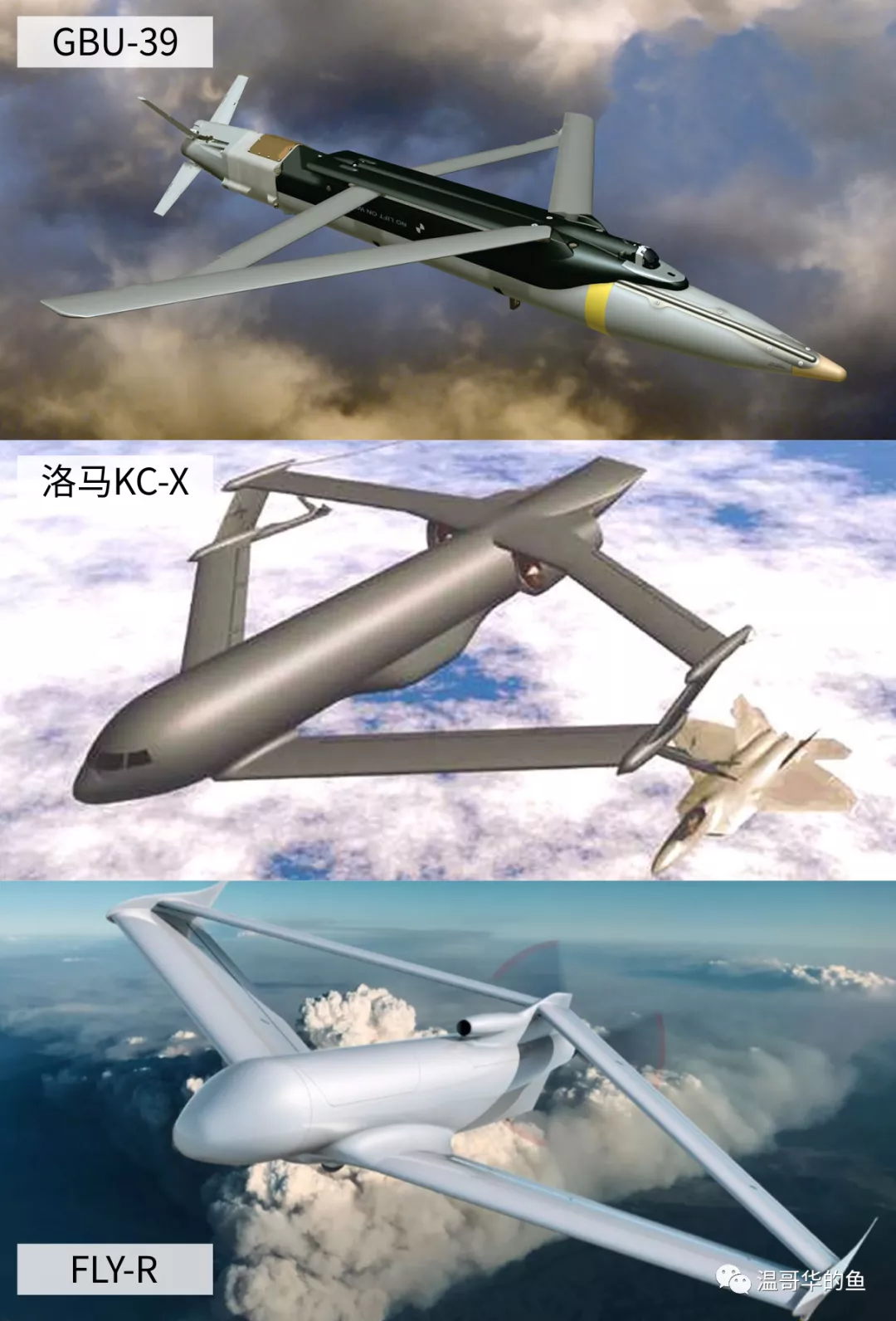 其實聯翼佈局在航空器中並不算罕見,以GBU-39為代表的“鑽石背”套件就是成功的應用範例,洛馬的KC-X選型方案、法國的FLY-R系列無人機都採用這樣的設計。