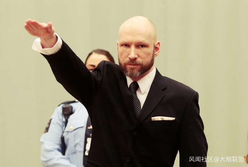 2011年的挪威炸彈槍擊事件,是由白人極端種族主者佈雷維克(Anders Behring Breivik)所策動的連環恐怖攻擊,圖為他在法院上以納粹手勢敬禮。 圖/美聯社