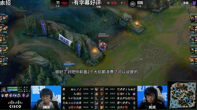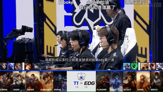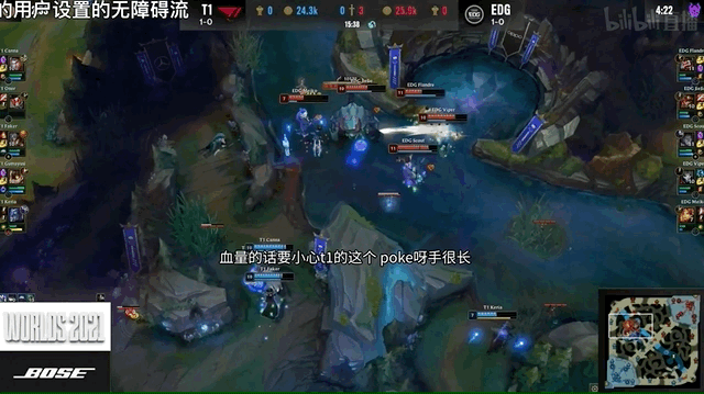 跟常規直播間不同的是,這個直播間是有AI實時字幕的,解説提到的隊名“T1”、“poke”等黑話基本都能正確顯示。