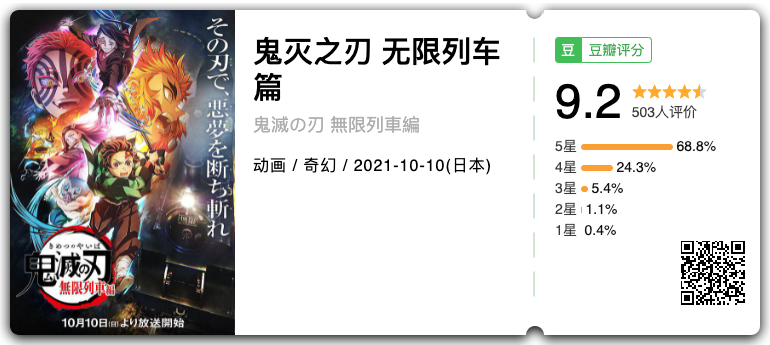 《鬼滅之刃 灶門炭治郎 立志篇》豆瓣評分9.1