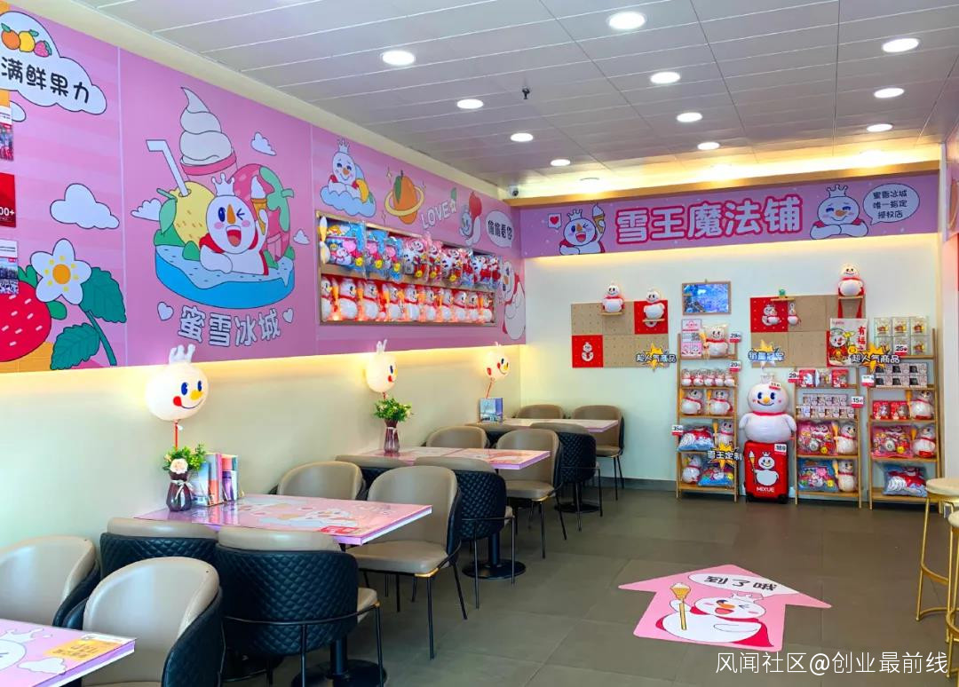 色彩鮮明的門店裝修、可愛的雪王和洗腦神曲,這個曾差點被張紅超pass的方案,卻意外讓蜜雪冰城紅出了圈。