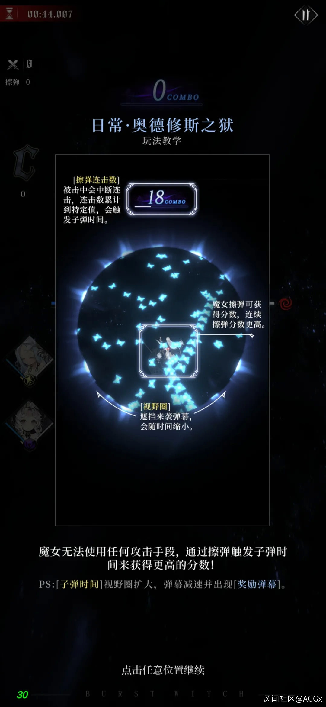 對於遊戲核心玩法的彈幕射擊要素,《爆裂魔女》進行了相當完整的呈現。比如遊戲內置的特色的擦彈系統,其設定是當子彈劃過角色時沒有觸碰到中彈判定點,即可獲得額外分數獎勵。這個系統是應對遊戲分數挑戰的重要設定,在過去也被玩家們戲稱是在“死亡邊緣反覆試探”。這是一個能令老玩家興奮不已的挑戰,更能讓入坑新玩家在領悟後獲得不同尋常的遊戲樂趣。