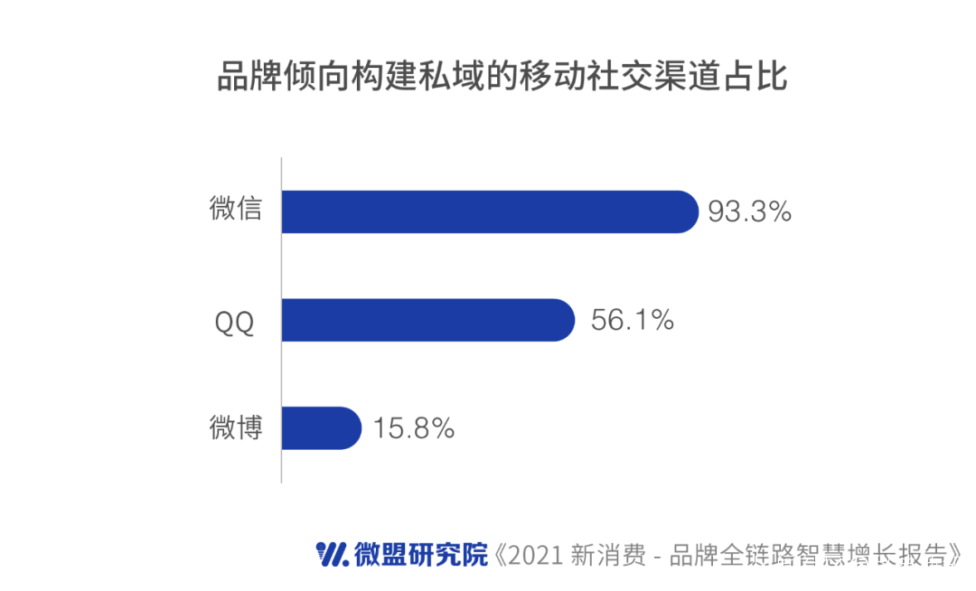 目前,在流量平台選擇上,93.3%的品牌私域營銷首選微信。