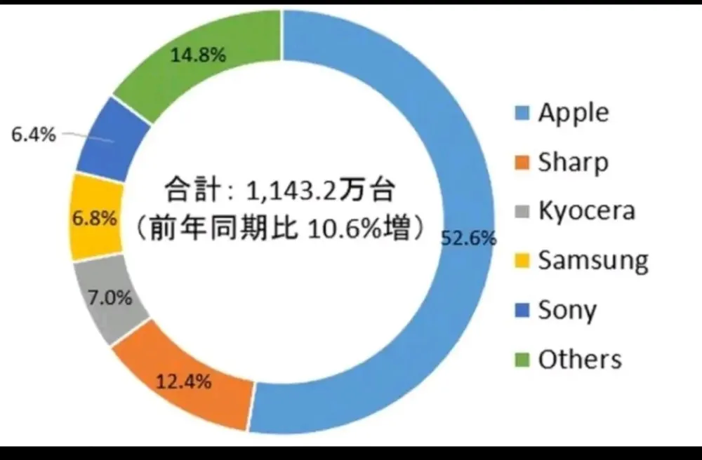 所以在2020年第四季度日本市場手機總出貨量蘋果佔據了超過50%,但在其它地區籍籍無名的夏普和京瓷市場份額加起來差不多還有20%的份額。2020年第三季度日本智能手機市場出貨量報告顯示,日本的智能手機出貨量為658.7萬台,其中蘋果佔比43.7%,剩下的基本全是日本本土手機,夏普、京瓷、索尼三家瓜分天下。