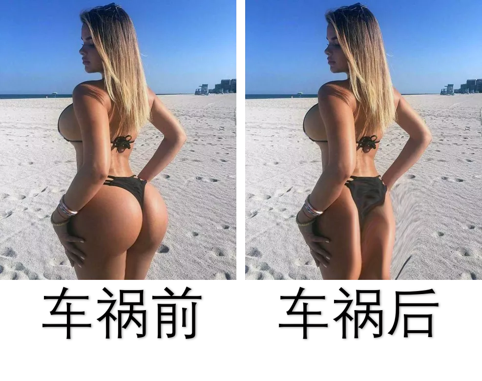 我們看了下,沉默了。好傢伙,整個屁股都被撞扁了,從卡戴山變成了卡戴平。