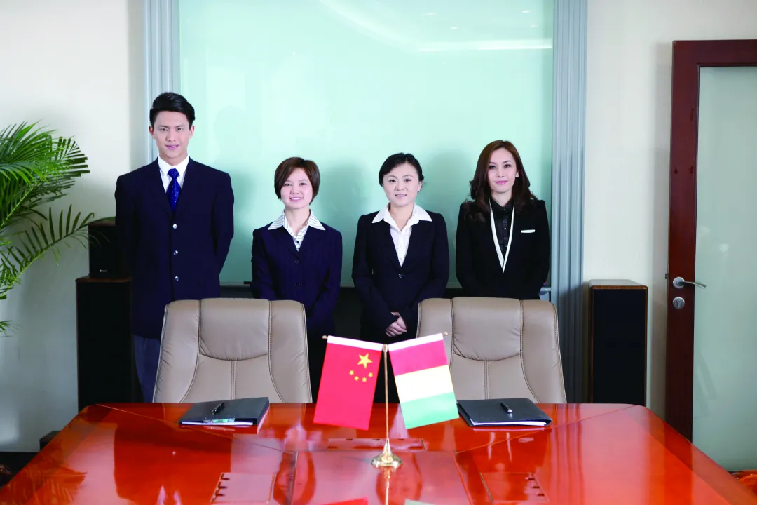 ❶ 助籤人員分主、客各站一邊,其餘工作人員根據職位從高到低而從內向外列隊於各自簽字代表的座位之後。主在左,客在右(以主人的左右為標準)。