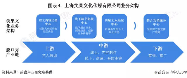 據介紹,笑果文化目前擁有四大業務中心:綜藝內容出品中心——製作大眾娛樂的綜藝內容,比如《脱口秀大會》《吐槽大會》等節目;線下演藝拓展中心——主要負責線下演出業務、劇場經營、創新業務研發等,將用户從線上引入線下喜劇消費場景中,比如“笑果工廠”“山羊GOAT”的脱口秀劇場;明星藝人經紀中心——內容而生的藝人經紀業務;整合營銷服務中心——為品牌方制定推廣戰略,通過營銷深入用户層面。