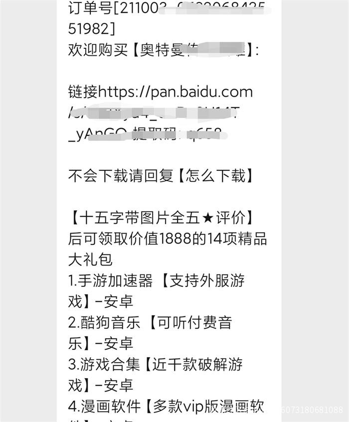 此刻心裏面一萬個MMB,你們沒有明明沒有該遊戲的PJ版,卻非要正大光明掛個PJ版出來售賣,有人下單就發你們自己內部推薦的遊戲給客户,這算不算欺詐?後來我回想了拼夕夕的套路,如果好評後他們也會自動發貨給你推薦的一大推遊戲讓你玩,話術都非常優秀,動不動就是送你價值上千元的大禮包,我也就消費個幾毛錢,你就送我如此價值的東西,我怎受的了啊,如下圖