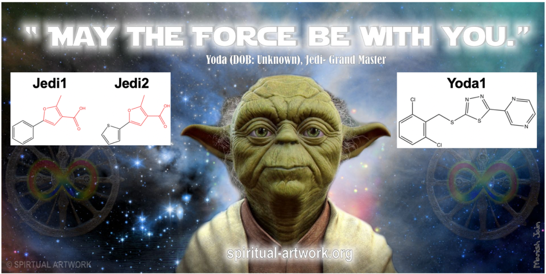 Yoda和Jedi的命名皆出自《星球大戰》,分別是尤達大師和絕地武士。“原力與你同在”是絕地武士們的信仰,也正契合了這兩類小分子作為機械力敏感的Piezo通道的激動劑的理念。