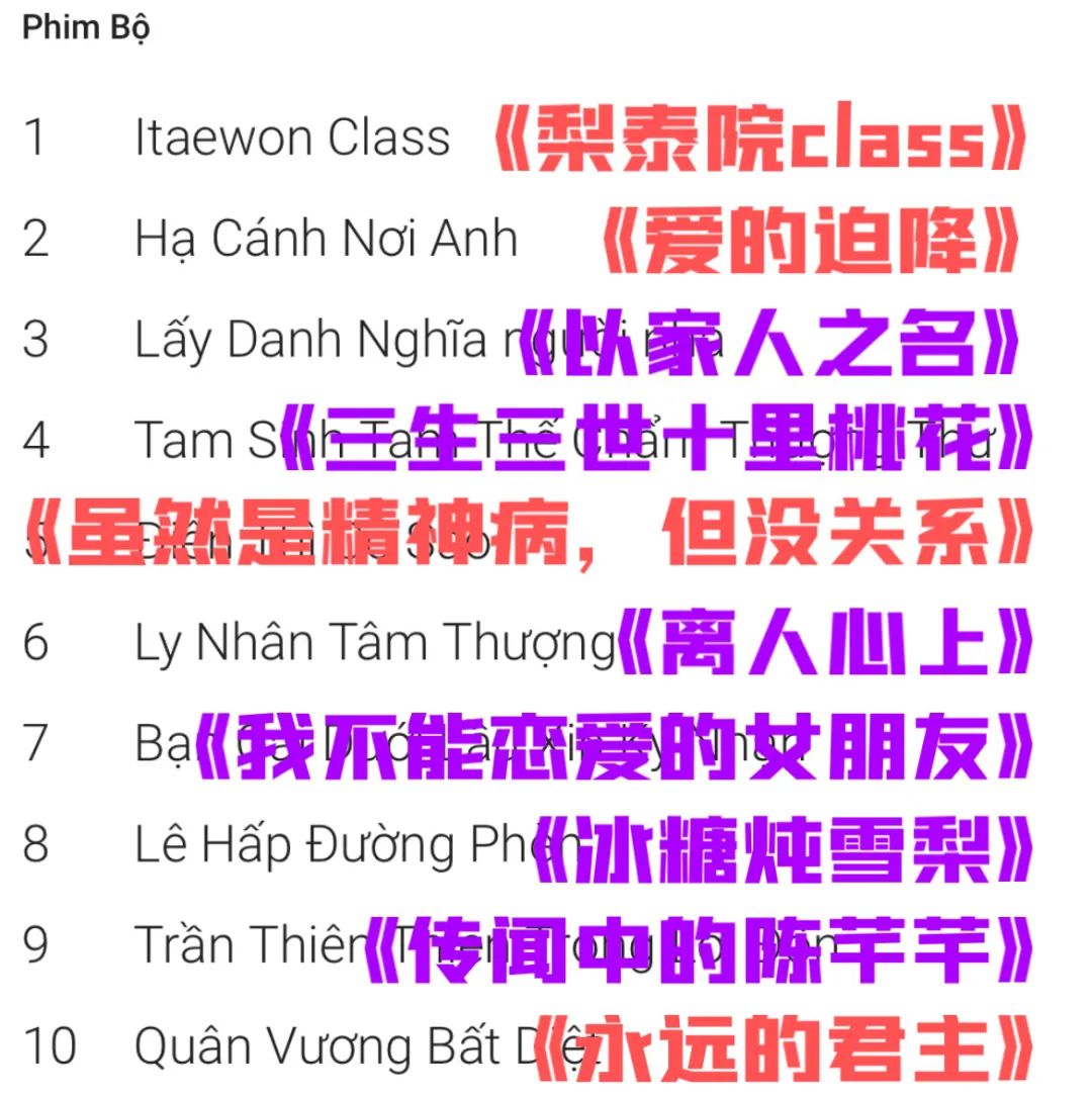 平台出海,帶動國產影視進一步擴張輸出。在越南2020年穀歌熱搜前10電視劇裏,有6個是中劇。