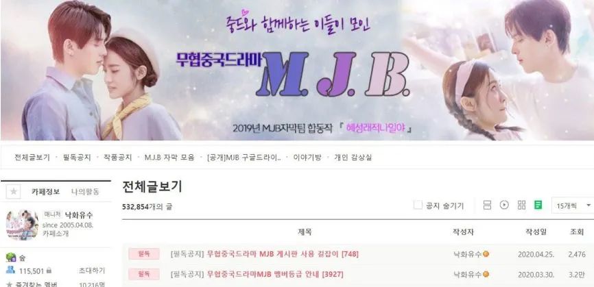 在韓國最大論壇naver cafe上,有11萬粉絲的中劇俱樂部。