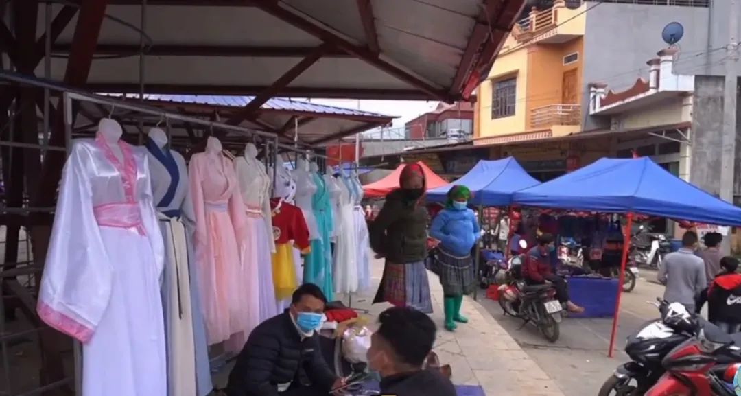甚至在遠離市區的村鎮集市上,都能看到大片賣漢服的小攤。
