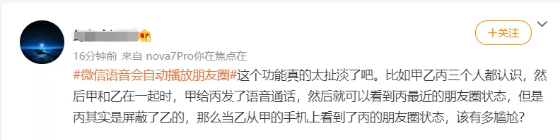 更多網友比較擔心,被屏蔽的人,如果在語音通話時,看到了自己的最新動態。簡直就是社死現場。