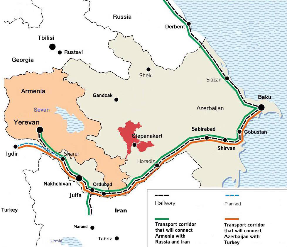 ● 納卡戰爭後,土耳其到阿塞拜疆的通道完全避開了伊朗 / 網絡