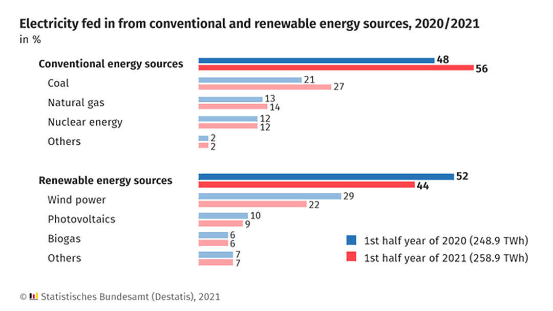 2021年德國清潔能源供應下降