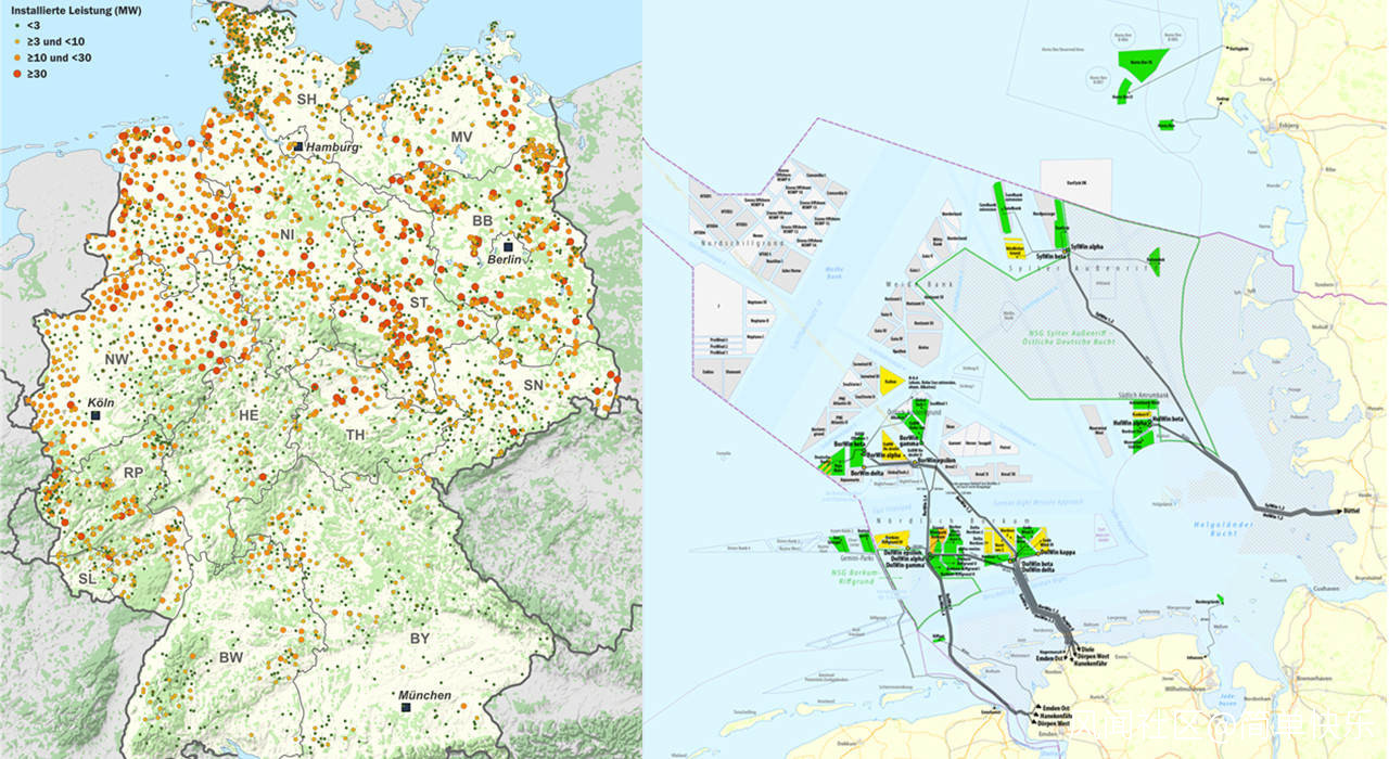 德國陸地及海上風電分佈