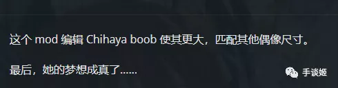 在MOD的簡介裏,製作者還不懷好意地寫道:“她的夢想成真了”。
