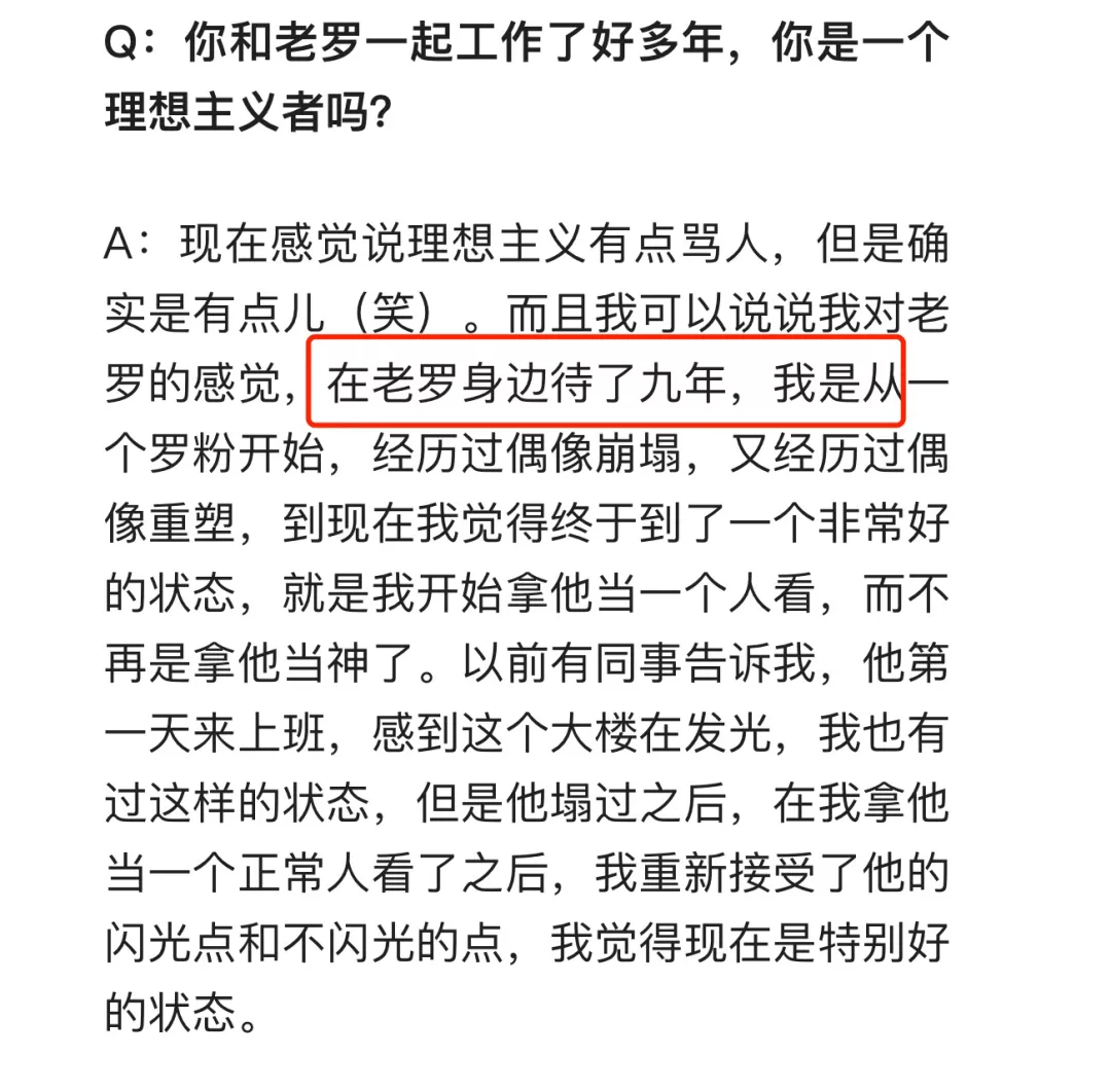 他還曾經跟隨老羅9年,一路從牛博網到老羅英語培訓再到錘子科技。