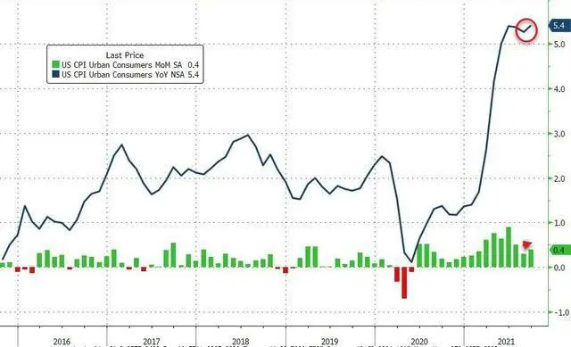 對此,Capital Economics的全球經濟服務部主管 Jennifer McKeown 認為,供應商交貨時間和港口條件的惡化表明,美國產品短缺現象將持續到明年中後期。另有專家認為,美國的供應鏈瓶頸可能要到2023年初才能消除。而美國勞工部公佈10月13日公佈的最新數據顯示,美國9月CPI連續16個月上漲,9月CPI同比上漲5.4%,超市場預期5.3%,連續第5個月同比增長超過5%,為2008年7月以來最高水平,較前值5.3%進一步攀升。