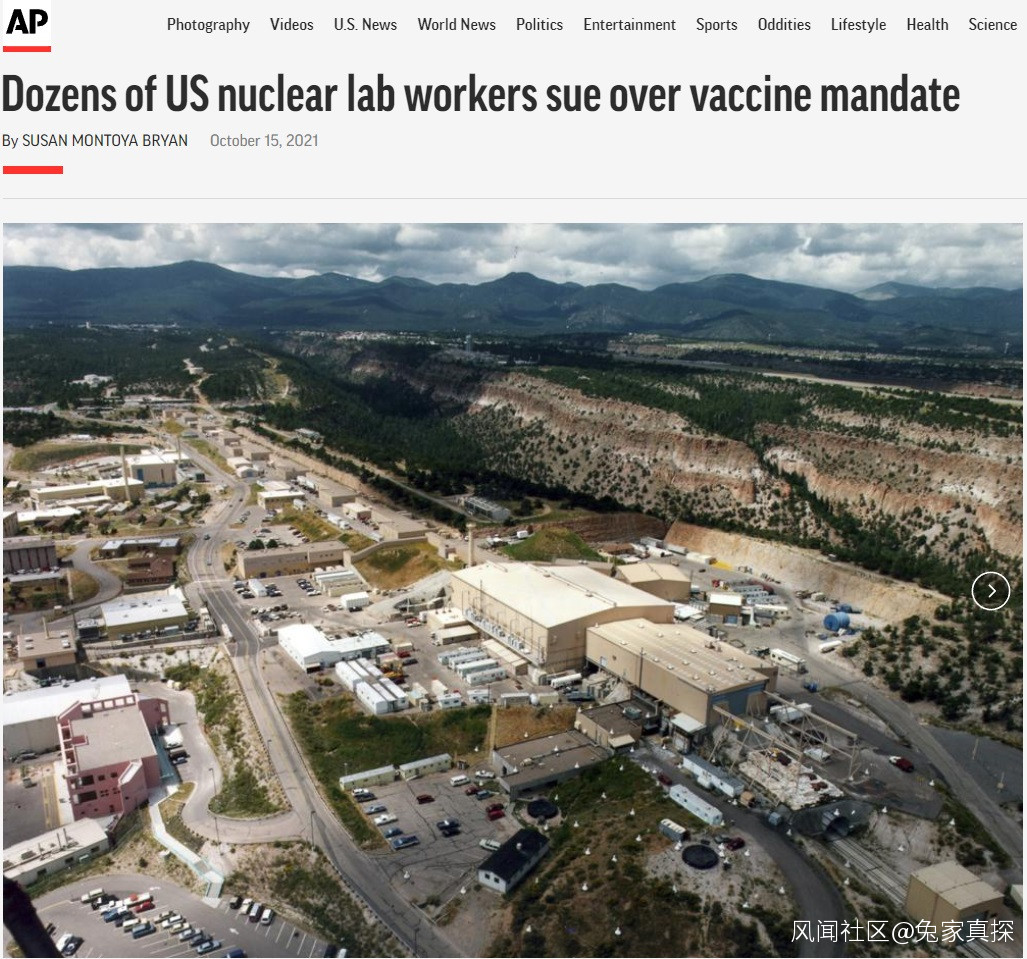 洛斯阿拉莫斯國家實驗室(原子彈的發源地)共有 114 名工作人員正在就強制接種提起訴訟,稱豁免被不當拒絕,他們的憲法權利正在被 Triad National Security LLC 侵犯,Triad National Security LLC 是代表美國能源部運營實驗室的承包商。