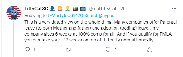 但也有人認為,這是一種過時的觀點。很多企業會給父母提供育嬰假和收養假。
