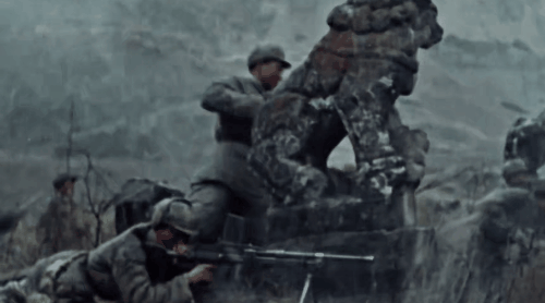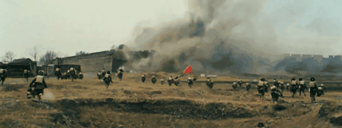 真正史料紀錄片裏的衝鋒鏡頭,有着明確分工合作,邊衝鋒邊掩護,接敵、衝擊和掩護分隊之間有密切配合。