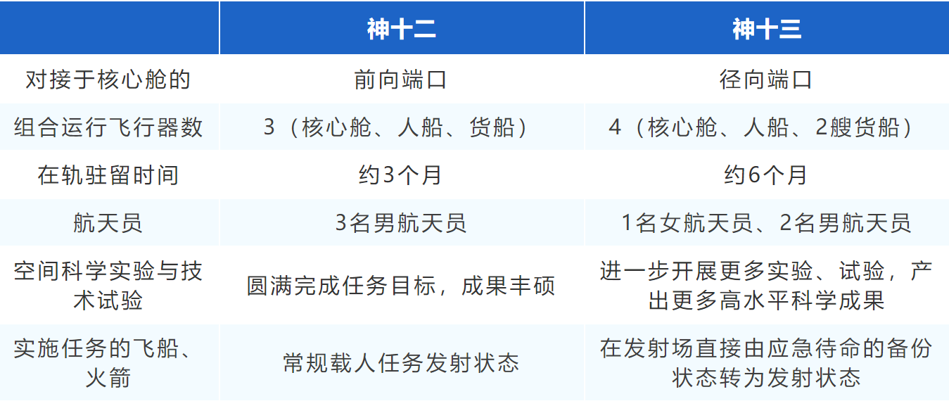 神舟十二號任務與神舟十三號任務的區別主要有: