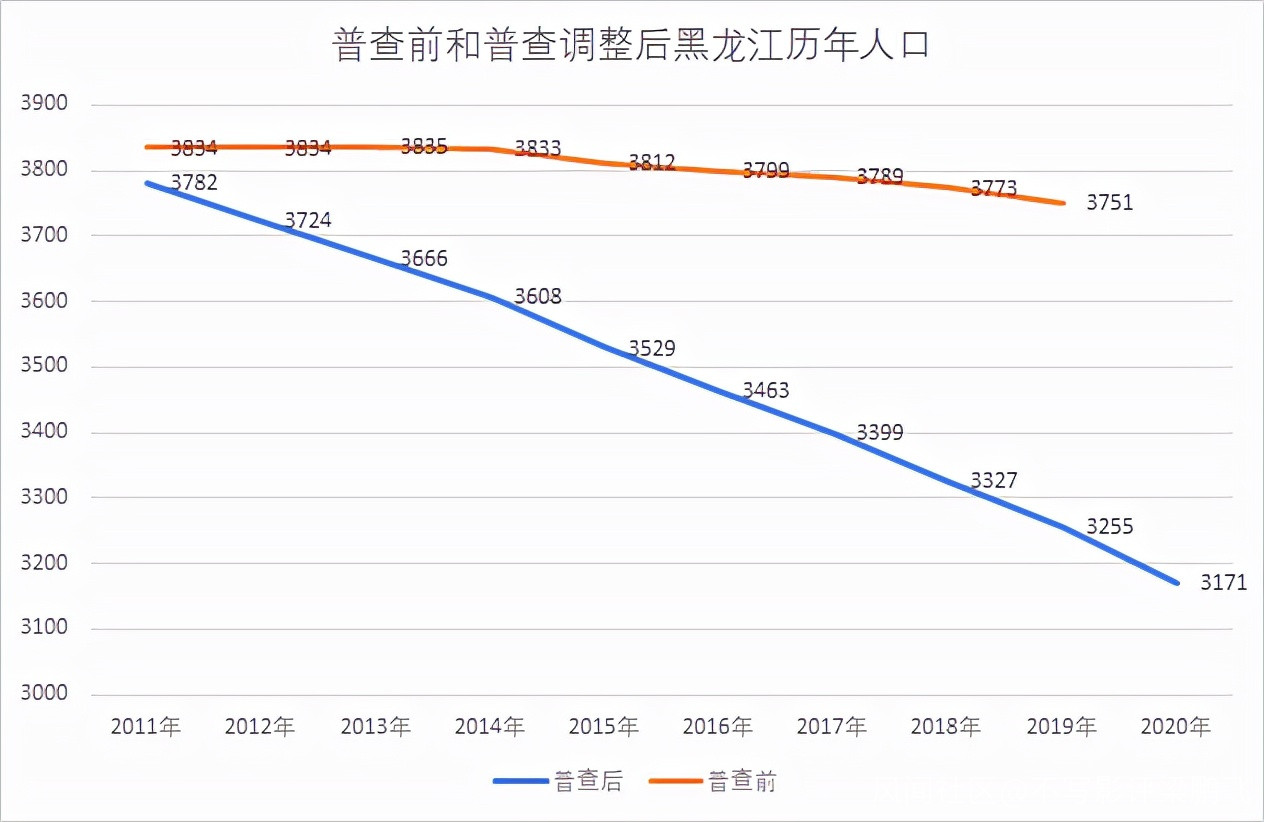 尤其是黑龍江的人口,屬於過去10年間全國流出最多的省份,沒有之一。這是知乎網友chenqin經過對比七普人口數據和歷年人口統計調整之後的數據製作的黑龍江歷年人口變化圖