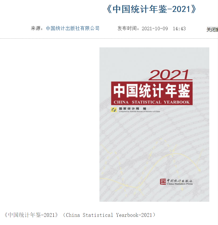 最近,國家統計局正式出版了《中國統計年鑑-2021》