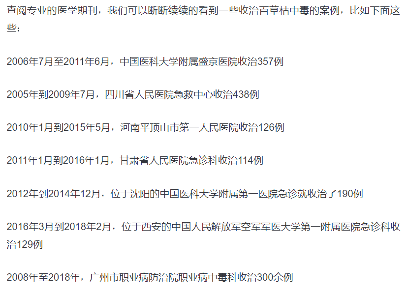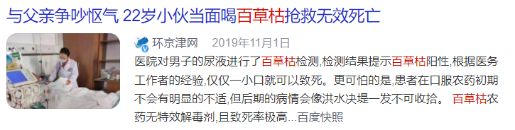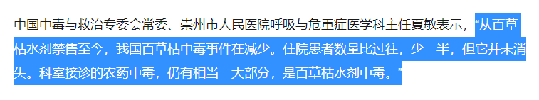 我還看到過這樣一個統計,過去幾年各大醫院收治的百草枯中毒案例都不在少數。