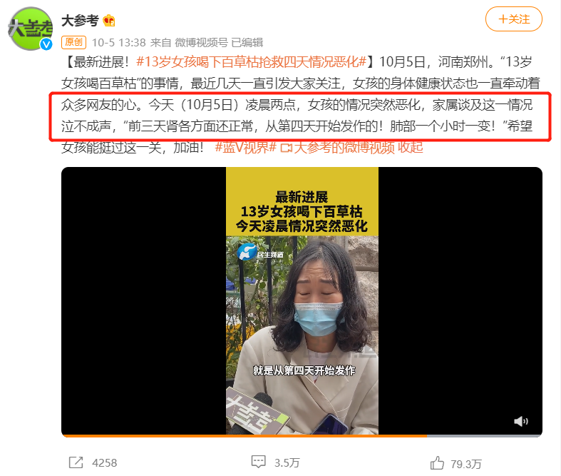 遺憾的是,在女孩的血液和尿液裏,都檢測到了“百草枯”的成分。市面上也確有將百草枯混入敵草快裏一起賣的情況出現。