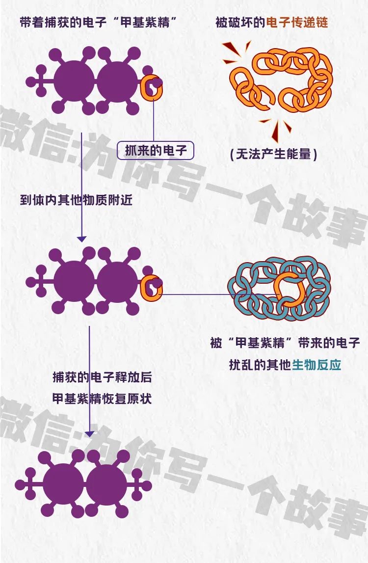 而且,這些被捕獲的電子釋放後,百草枯本身又恢復了原狀態,可以繼續捕獲電子,破壞平衡,形成一個極具破壞性的循環。