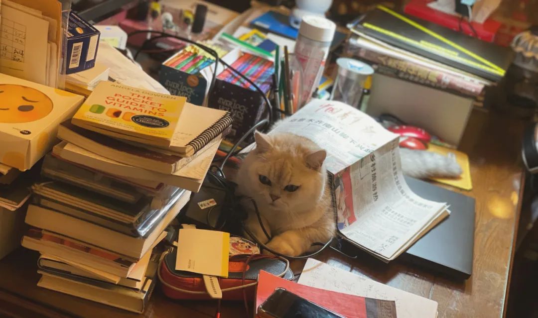 擁擠不堪又雜亂無章的桌子上,堆放着各種本應該被扔掉卻始終被他視為珍寶的垃圾。搞得柚子在這個桌子上只剩下了豆腐塊大小的容身之地。