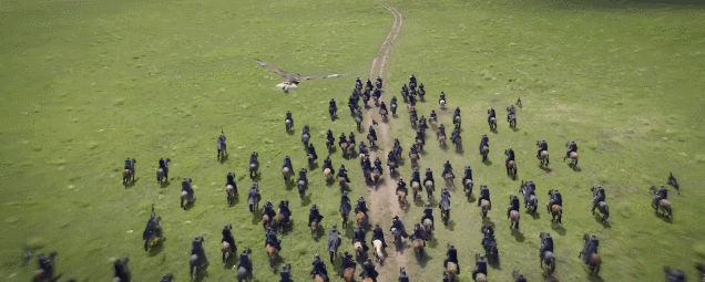 戰爭戲,騎兵衝進國內四星酒店質感的歐式城堡,和一隊年會cosplay扮相的士兵廝殺。