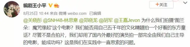 當時高管採訪透露將通過《圖蘭朵》擴展電影業務,培養人才。